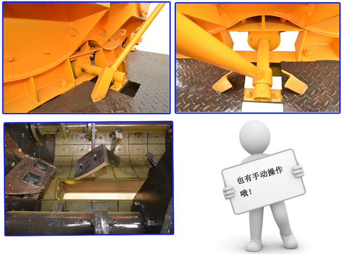 卸料系統(tǒng)由卸料門、氣缸或者是液壓缸等機構(gòu)組成,有三種結(jié)構(gòu):液壓控制、氣動控制、手動控制。卸料門安裝在攪拌機底部,通過氣缸或者液壓缸,實現(xiàn)機動卸料,在卸料門上方左右各安裝一個限位開關(guān),以控制卸料門的開閉位置,通過調(diào)節(jié)密封條的位置可保證卸料門密封。